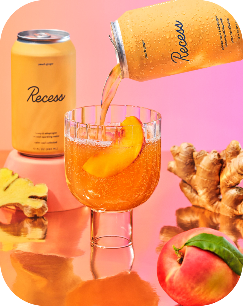 peach ginger a sparkling water infused with hemp & adaptogens to ease the day. brewed with real dried peaches & ginger Loading... Loading... Loading... Loading... Recess is my favorite when i want a tasty, relaxing drink but don't want alcohol — @abby.formella i am not currently drinking alcohol but still want something at night. i've been LOVING Recess to help me relax — @sammiieleven i really only drink socially these days and really love Recess for an after work treat — @lexieconsumers refreshing and low in calorie with the right amount of fizz — maree i drink it in the afternoon when i need a little chill vibes but still need to focus at work. noticeably feel more relaxed — mohammad g. as far as adaptogen beverages are concerned, this is the best tasting and most effective one i've tried yet — e. k. Recess in the press functional ingredients you can feel made with real ingredients, uplifting guayusa & balancing adaptogens. Recess Zero Proof is the perfect alcohol alternative only the good stuff made with real fruit no fake things low calorie very delicious Learn More the Recess sampler sparkling water infused with a calming blend of hemp & adaptogens in all 5 flavors Shop as seen on instagram shop all Shop All