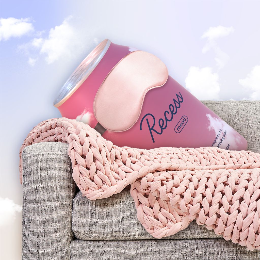 the cozy season is upon us, so enter our giveaway and you could snuggle up with a Bearaby sustainable weighted blanket and three 12-pack samplers of Recess Mood