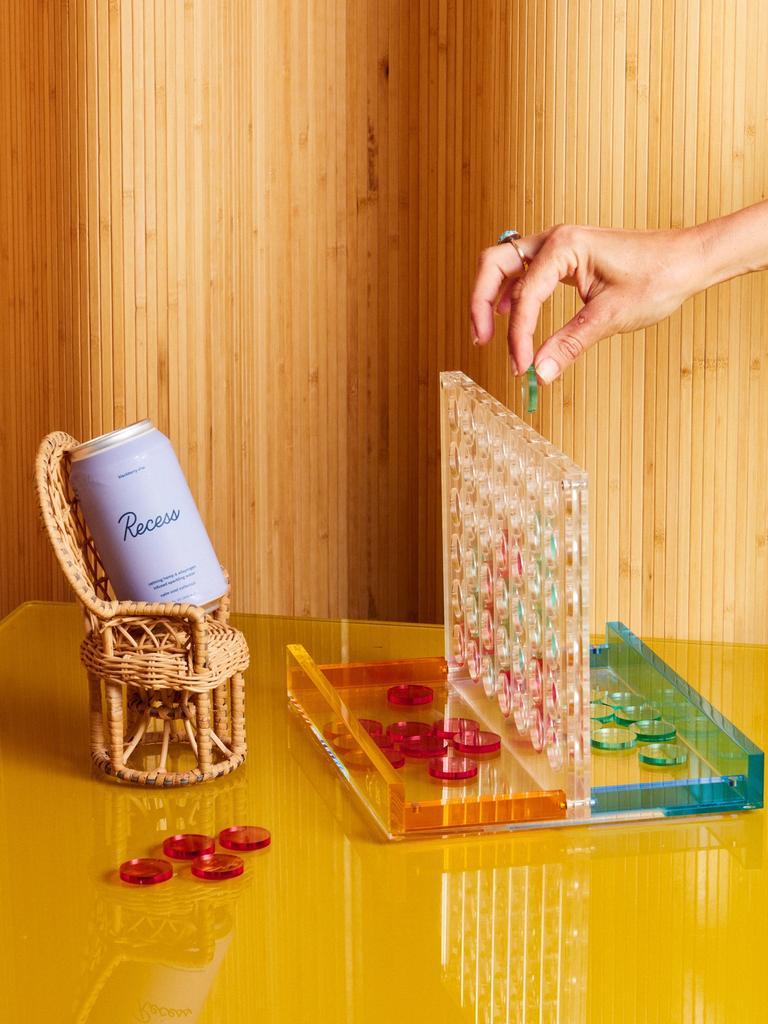 we’re giving away everything you need to take a Recess with our friends at Recess: our Lucite 4 In A Row game, 2 cases of Recess (with hemp) and 1 case of Recess Mood ($300 total value).